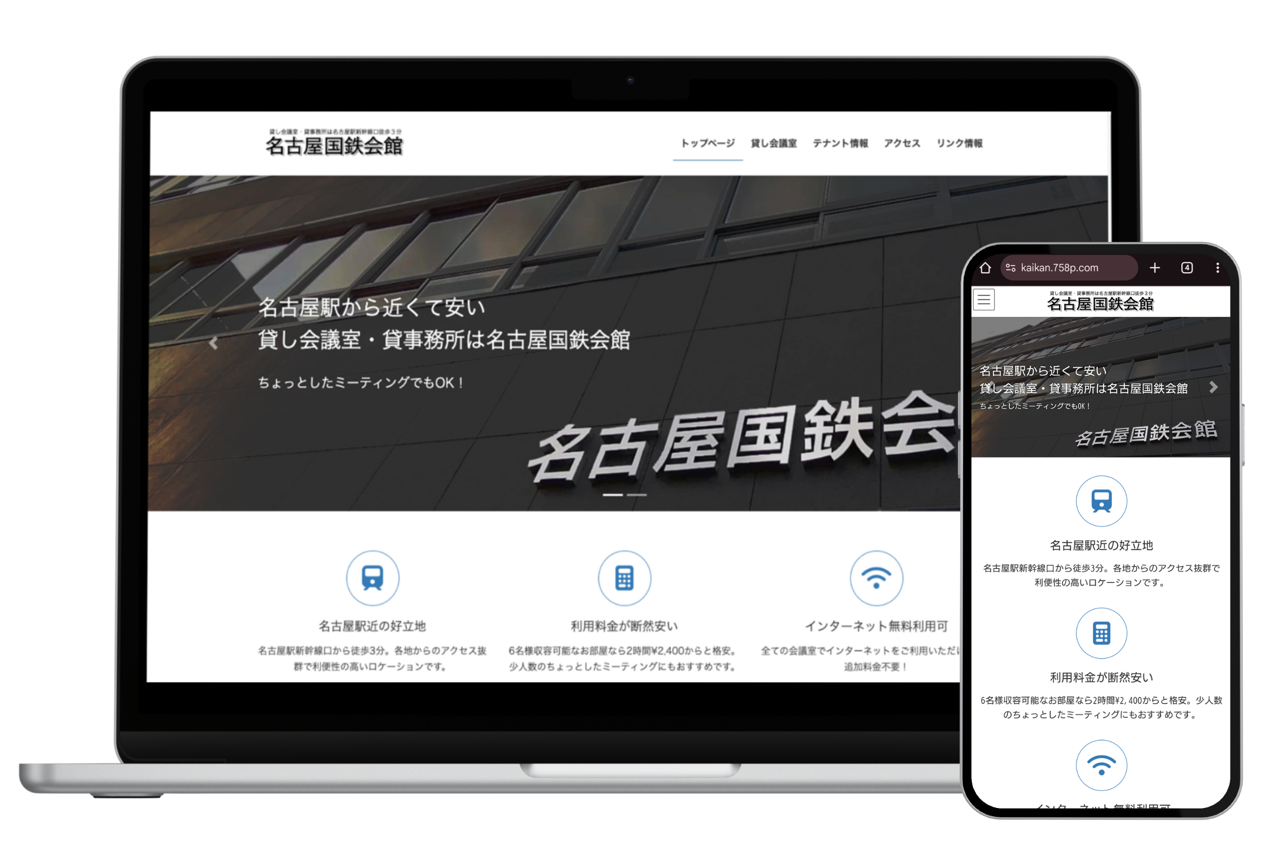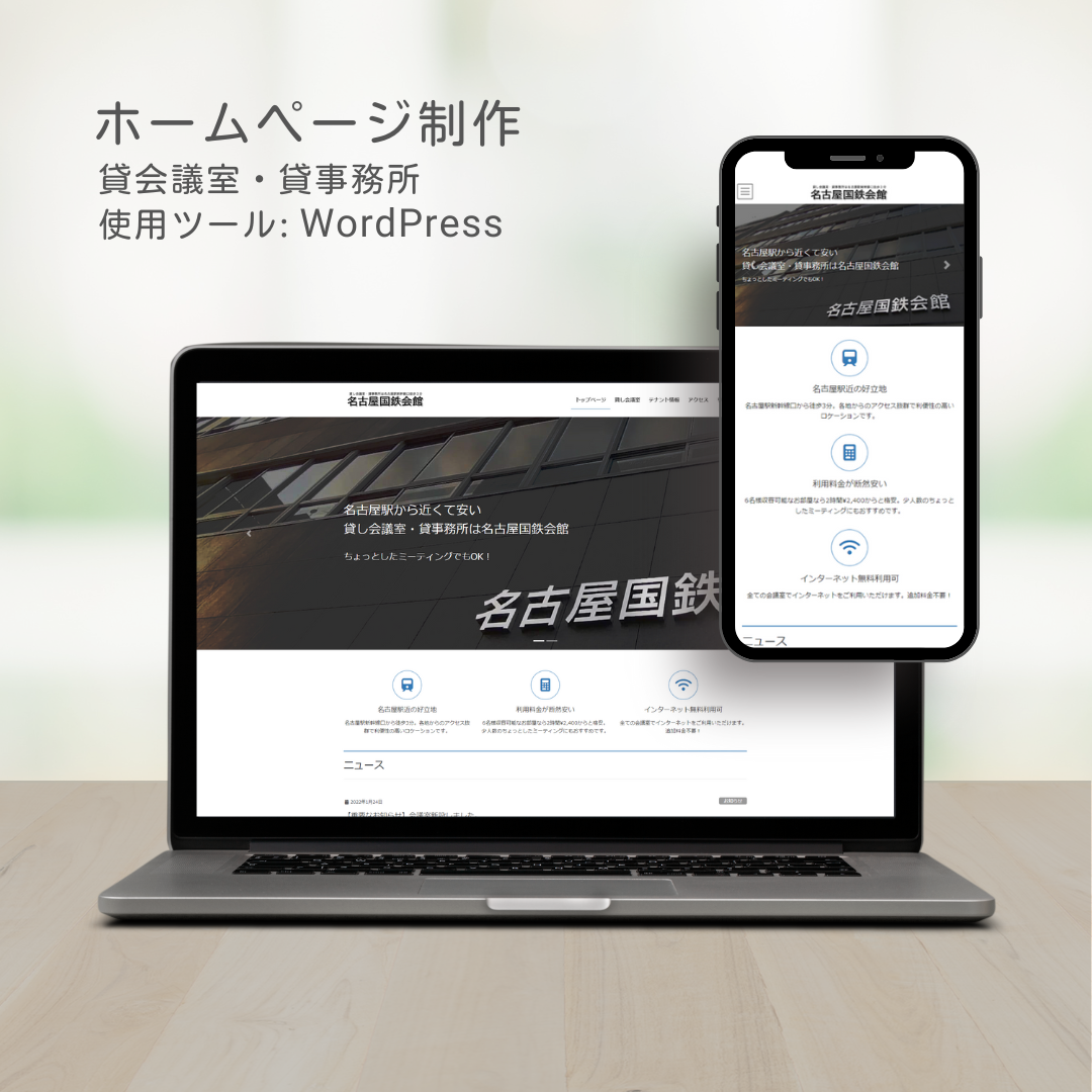 - 既存HPをWordPressで再構築、テナントや貸し会議室の情報を見やすくリニューアル。